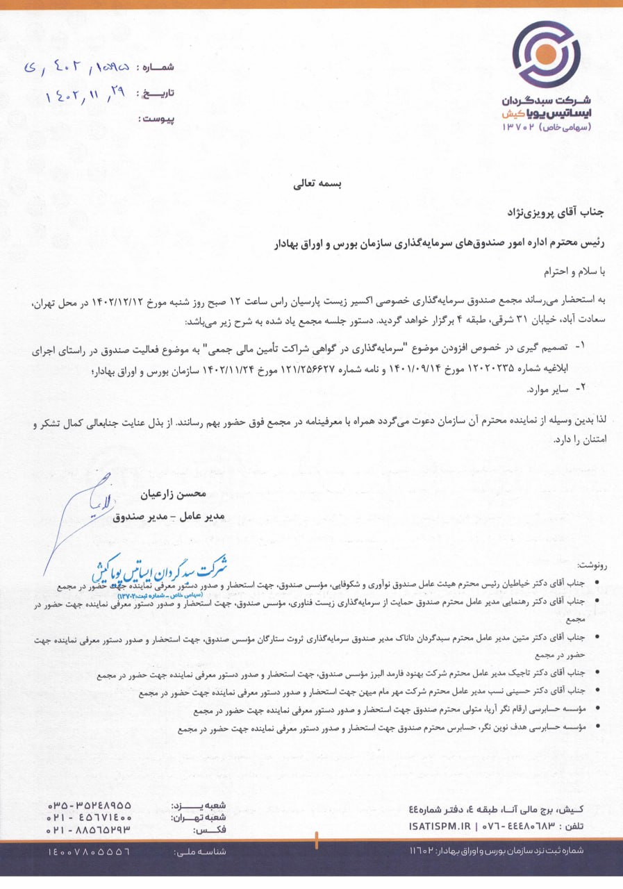 آگهی دعوت به مجمع صندوق در تاریخ ۱۴۰۱/۱۱/۰۸